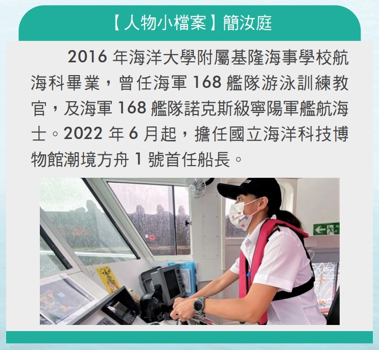 「我熱愛我的工作,我的工作也是我的興趣,在我任職潮境方舟船長以後,一開始也是遇到非常多的性別問題,例如你是女生,你可以獨立駕駛一艘船嗎?」