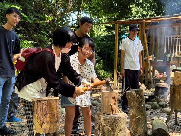 野外求生的第一步的就是要學會「生火」,這不是一件簡單的任務,有很多前置作業需要準備,例如撿枯木、劈柴、削木屑等等,經由講師仔細說明,孩子們開始一一練習。