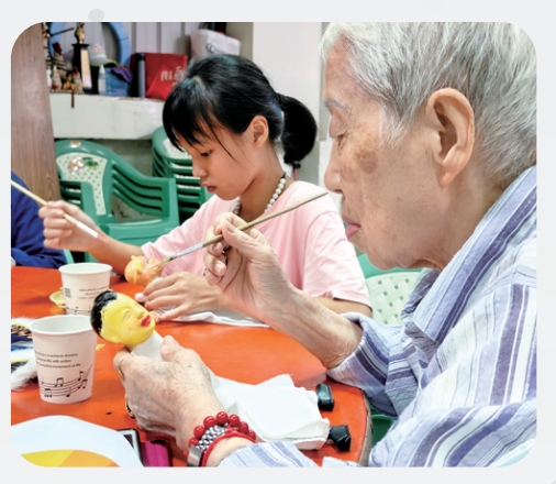 演戲之前,我們先設計活動讓阿公阿嬤跟孩子們一起彩繪布偶,通過「兒老共學」的方式,讓大家在互動中建立深厚的情感。林奶奶說:「如果看到沒有小朋友來,我就會問,小朋友怎麼沒有來呢?我真的很喜歡小朋友啊!」