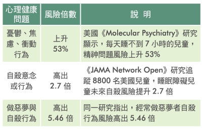 • 長期缺乏睡眠的孩子,較一般人容易出現憂鬱或焦慮的狀況。